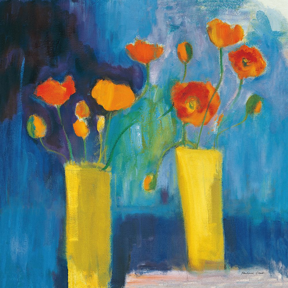 Cadmium Orange Poppies on Blue